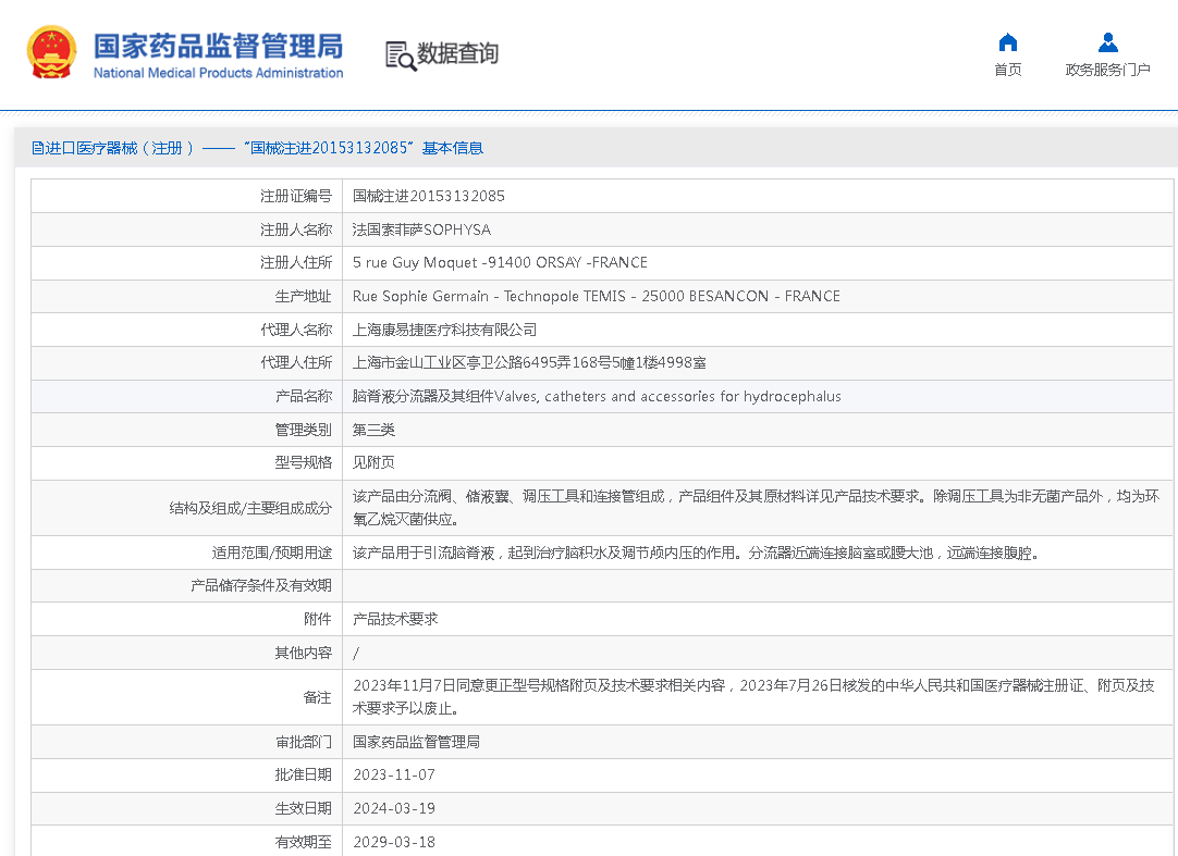 脑脊液储液囊配有外接导管,用以连接脑脊液分流系统。远端导管,长20mm,内径1.1 mm,外径2.2 mm,由硅胶制成,含不透射线条纹。近端接口与远端导管相对,远端末端开放。