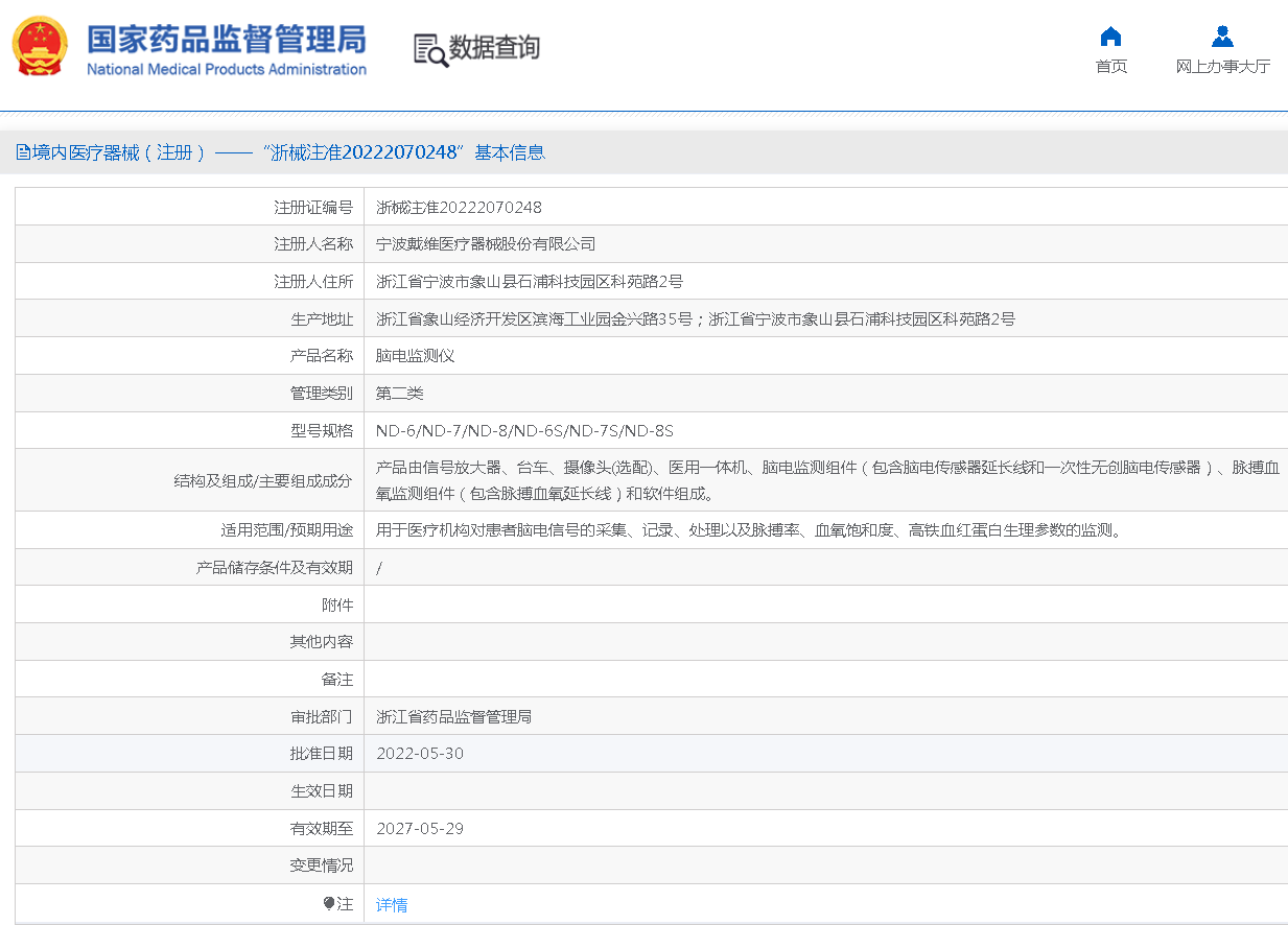 适用范围:用于医疗机构对患者脑电信号的采集、记录、处理。