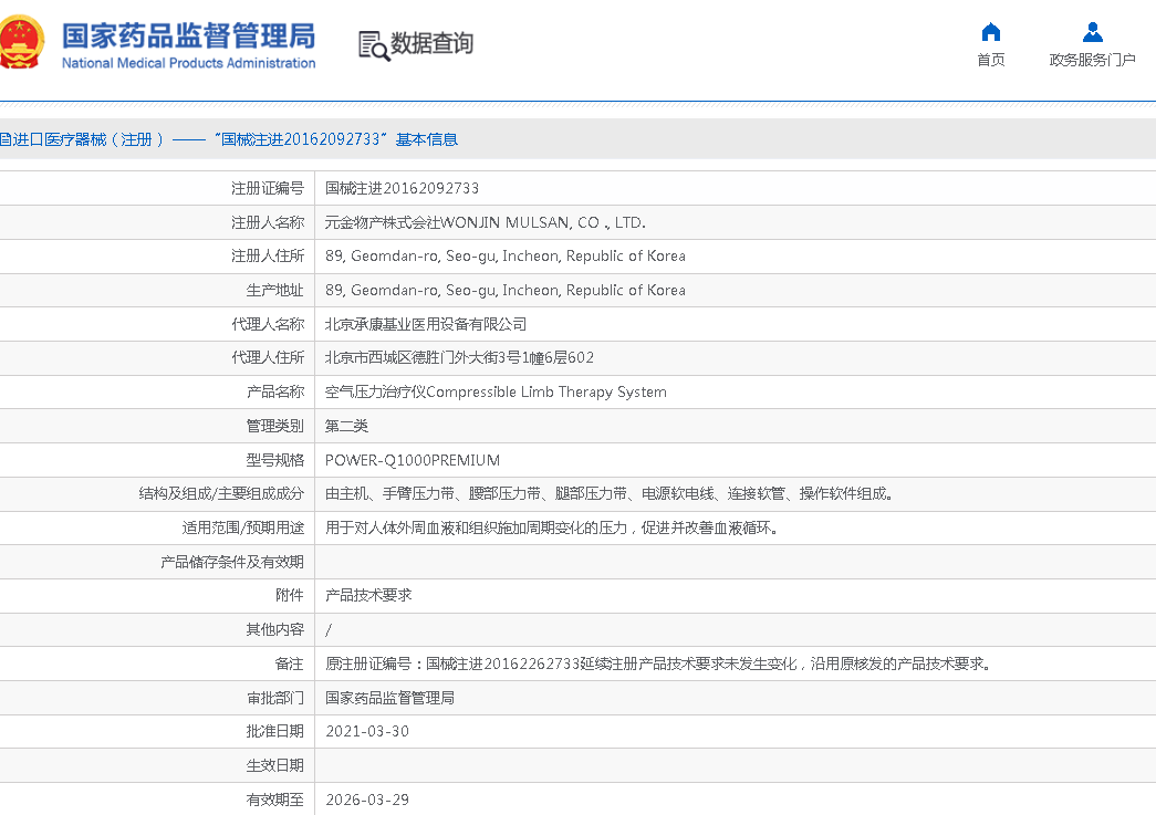 治疗仪 注册证编号:国械注进20162092733